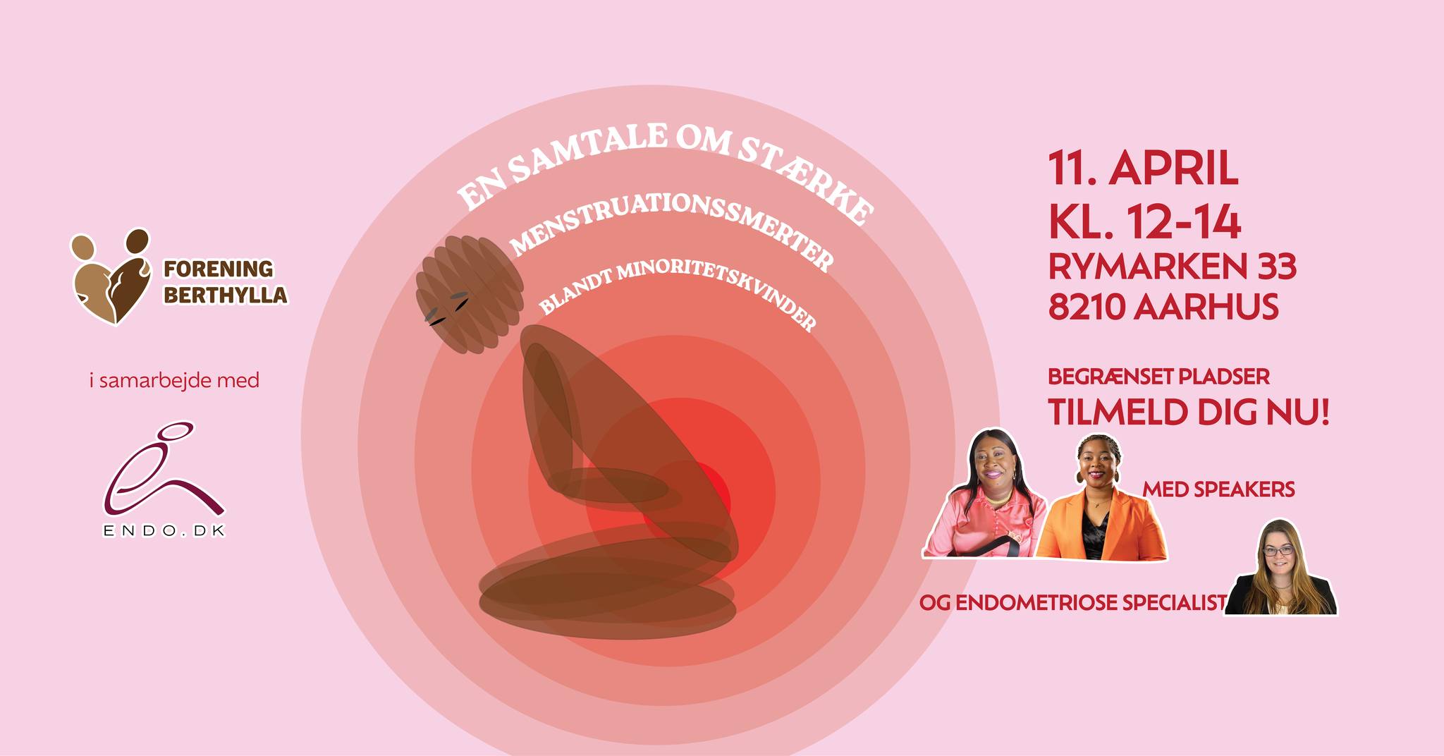 En samtale om stærke menstruationssmerter blandt minoritetskvinder. Event afholdes i samarbejde mellem Forening Berthylla og Endometriose Fællesskabet.