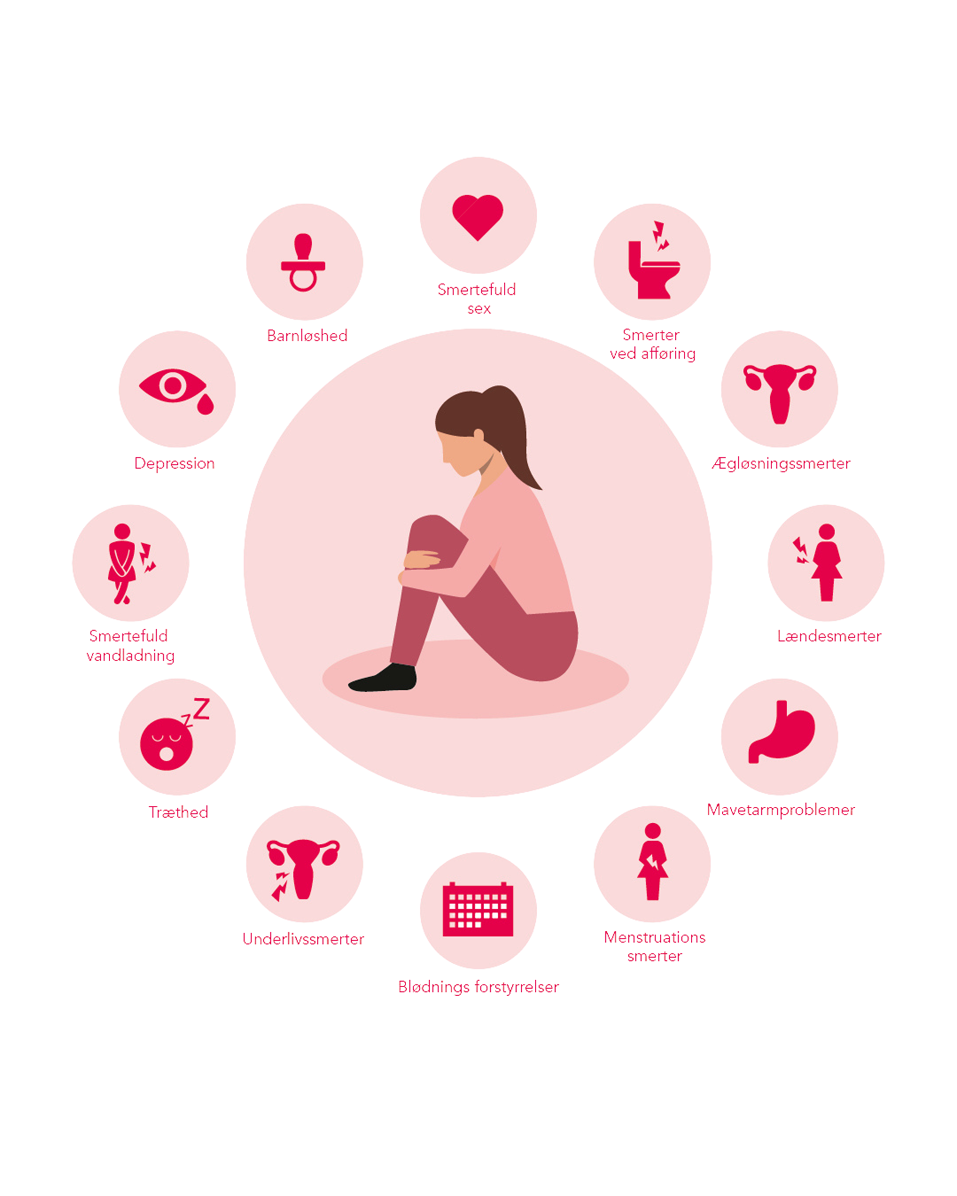 Oplever du betydelige smerter ved menstruation, vandladning eller afføring, udpræget træthed, uregelmæssig blødning, ufrivillig barnløshed eller vedvarende underlivssmerter? Så kan det være symptomer, som du bør få undersøgt.