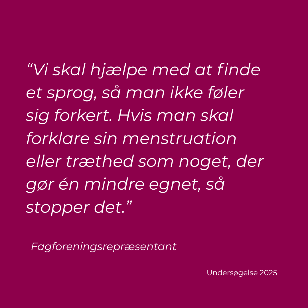 Nogle ved ikke, hvad de fejler. Andre tør ikke fortælle, fordi det handler om menstruation, fertilitet eller hormoner – noget, der stadig er omgærdet af tabu og skam. Det gør det sværere at tage dialogen i tide. Som fagforening er det derfor afgørende at: