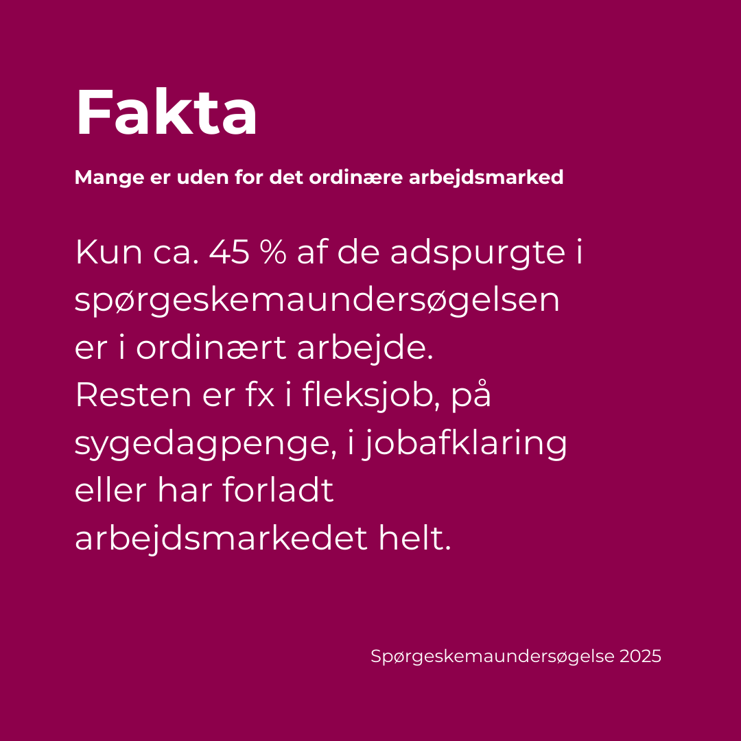Kun ca. 45 % af deltagerne i vores undersøgelse er i ordinært arbejde.