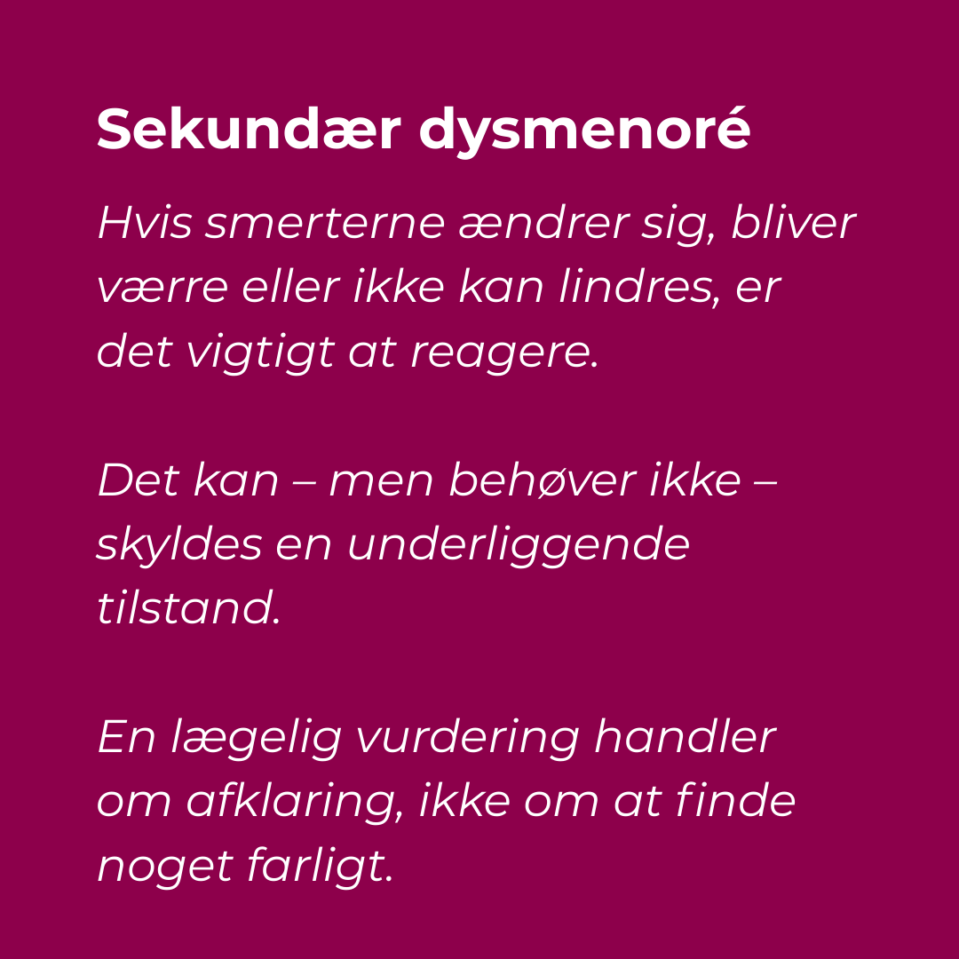 Sekundær dysmenoré kan blandt andet skyldes tilstande som endometriose eller adenomyose, og smerterne udvikler sig ofte gradvist over tid.