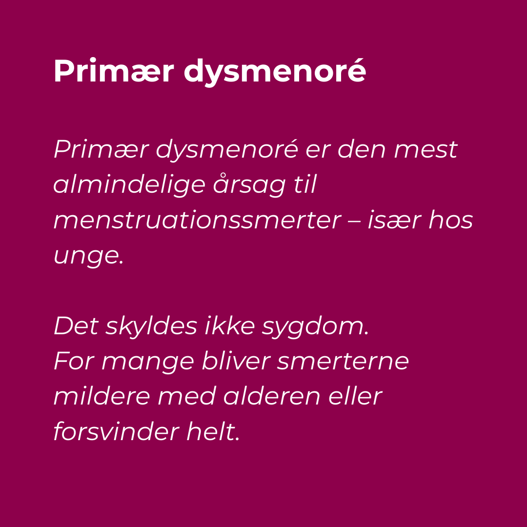 Primær dysmenoré er den hyppigste form for menstruationssmerter, og den ses især hos unge kvinder og piger i årene efter den første menstruation. Smerterne opstår uden, at der er tale om sygdom eller forandringer i underlivet.