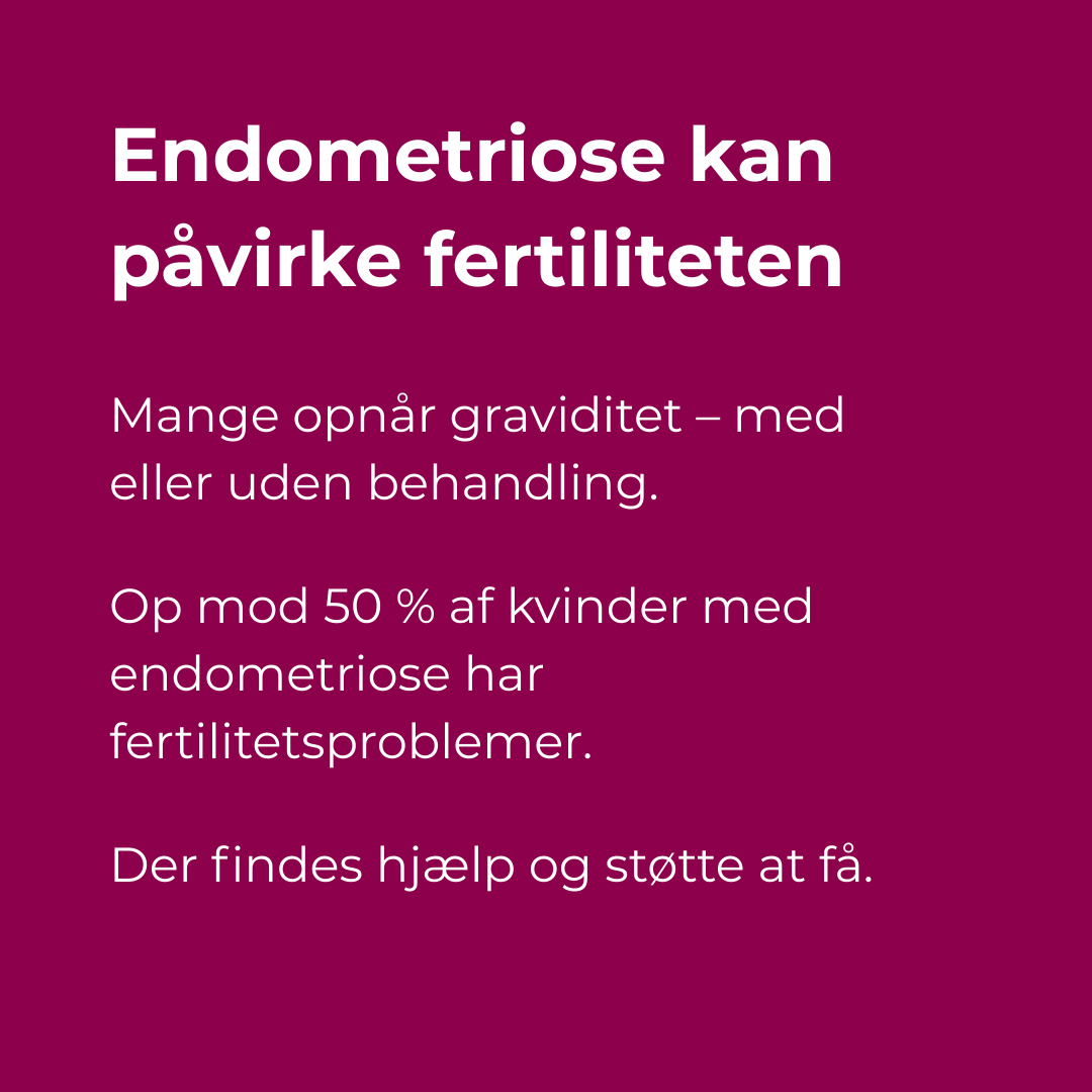 En af de mest almindelige symptomer på endometriose er ufrivillig barnløshed. Op til 50% af kvinder med endometriose lider af ufrivillig barnløshed. Hele 70% af de kvinder, som får fertilitetsbehandling, opnår også graviditet trods endometriose.