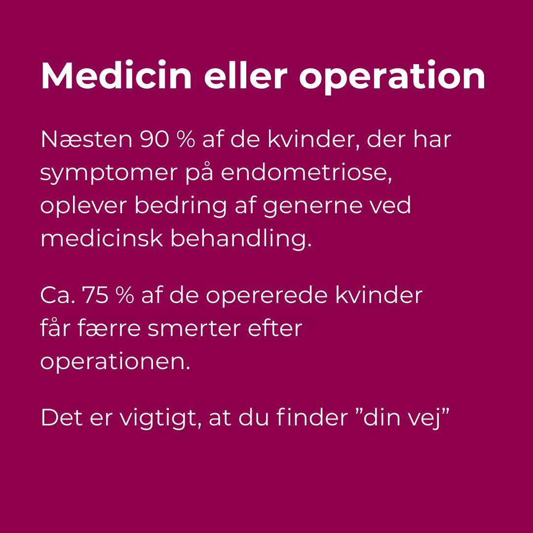 Heldigvis har behandlingen i langt de fleste tilfælde rigtig god effekt, så du kan leve livet uden at være plaget af gener. Når du hører om tilfælde, der ikke ligner dit eget – så betyder det ikke, at din oplevelse af symptomer er forkert. Det er blot en anden præsentation af sygdommen. Hvis du hører om nogen, der lever med invaliderende smerter og andre svære komplikationer til endometriose, betyder det ikke, at det er din fremtid.